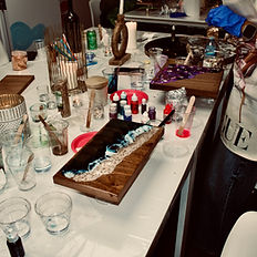 A resin workshop is a hands-on class where participants learn how to work with resin, a type of liquid material that hardens into a clear, glossy finish. In a resin workshop, you'll learn various techniques for mixing, pouring, and manipulating resin to create beautiful and unique pieces of art. It's a fun and creative way to explore different artistic possibilities and create stunning resin artwork! We have wooden pieces available in our shop you may choose and purchase. you may also bring in a piece of your own to decorate with resin. you will have free access to many of different shapes of moulds too.